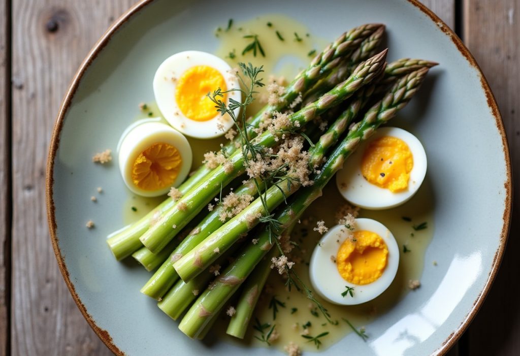 Descripción corta: Espárragos blancos de la huerta navarra, cocidos y servidos con una vinagreta suave de aceite de oliva, vinagre